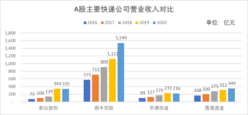 2020年營業(yè)收入1540億元,直接比圓通、韻達、申通這些多出一個數(shù)量級。